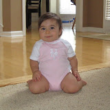 During the last few weeks, it's become all too real that Ellie is definitely not an infant anymore. She outgrew her infant seat, baby tub, and swing. We are down to only one nursing a day, and as of Monday, she is moving up to the next room at 'school.' Tooth #6 is just about out. At this rate, she'll be eating steak by her first birthday. Changing diapers of 10 month olds should be a new Olympic event. I remember when putting her on her stomach for even the shortest amount of time would result in screaming beyond belief. She was so happy being on her back. In fact, we used to put down a blanket and lay her on the table even when we were out at dinner. Got us a few strange looks, especially at the hibachi restaurant, but hey, she would just lay there and let us eat in peace. Now, I can't get her to stay still for a second. Crawling is so cute until it's your kid that's doing it. We can't keep her contained in one area for more than 2 minutes, and she only wants to go where she isn't supposed to go. Forget the nice, soft carpet we put down in the family room. Hardwood is apparently so much cooler. Now she's even pulling herself up to the standing position. This is just too much.